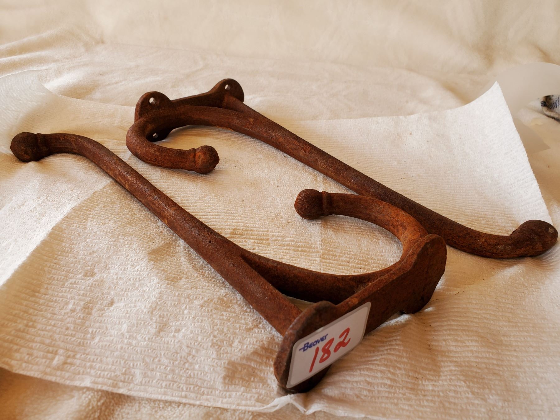 CAST IRON PAIR OF 11.5" HARNESS HOOKS (NOT OLD) *RUSTY*