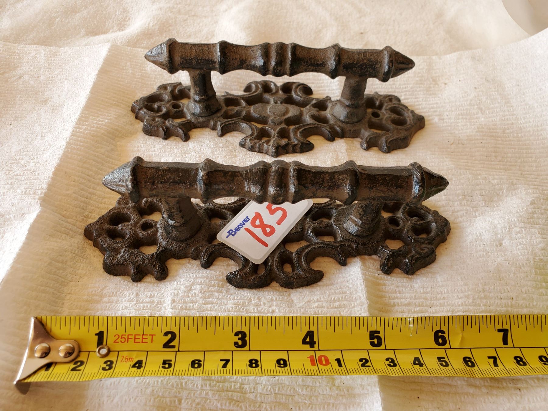 CAST IRON PAIR OF ORNATE GATE HANDLES (NOT OLD)