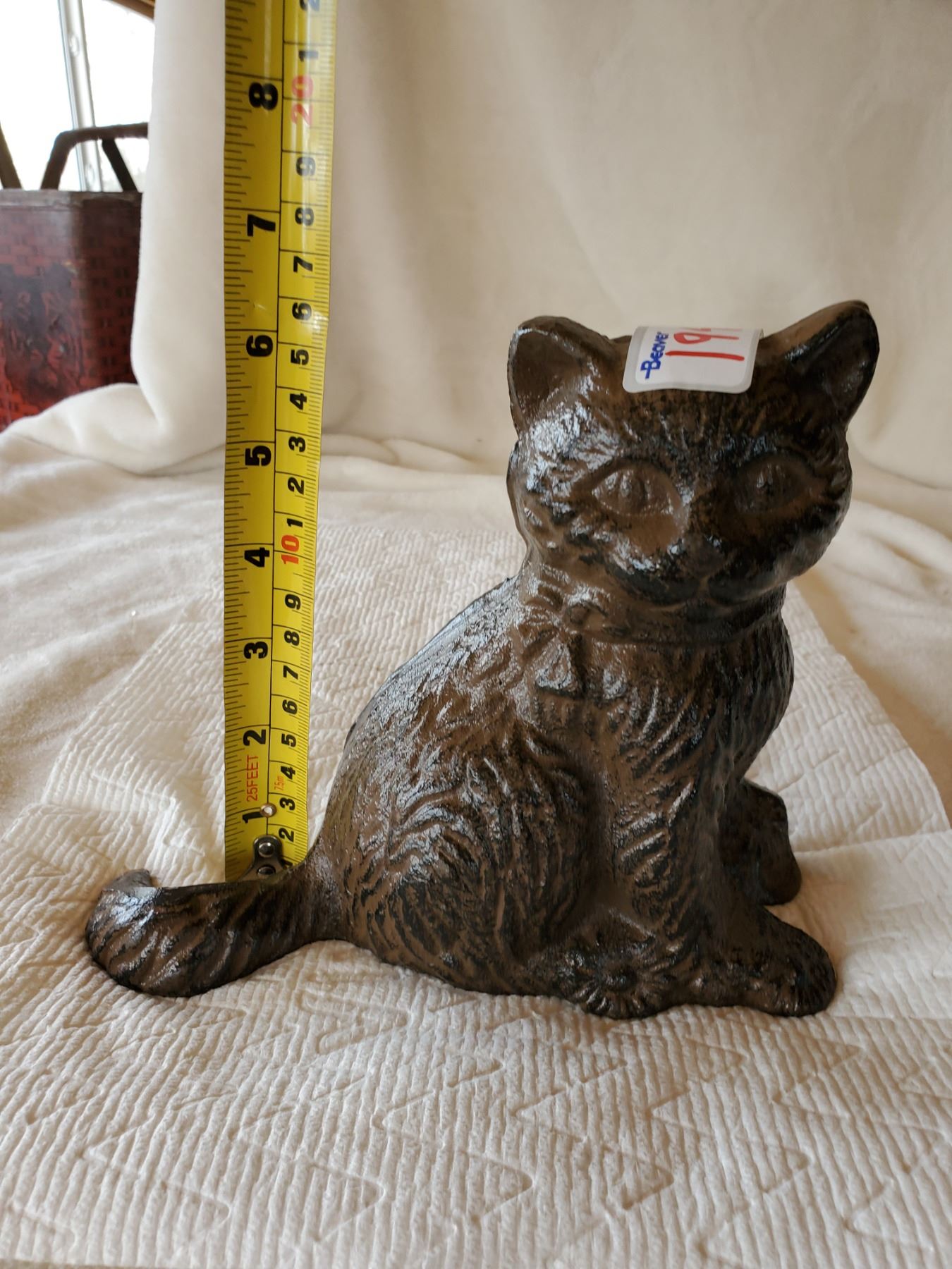 CAST IRON SITTING KITTY DOOR STOP (NOT OLD)