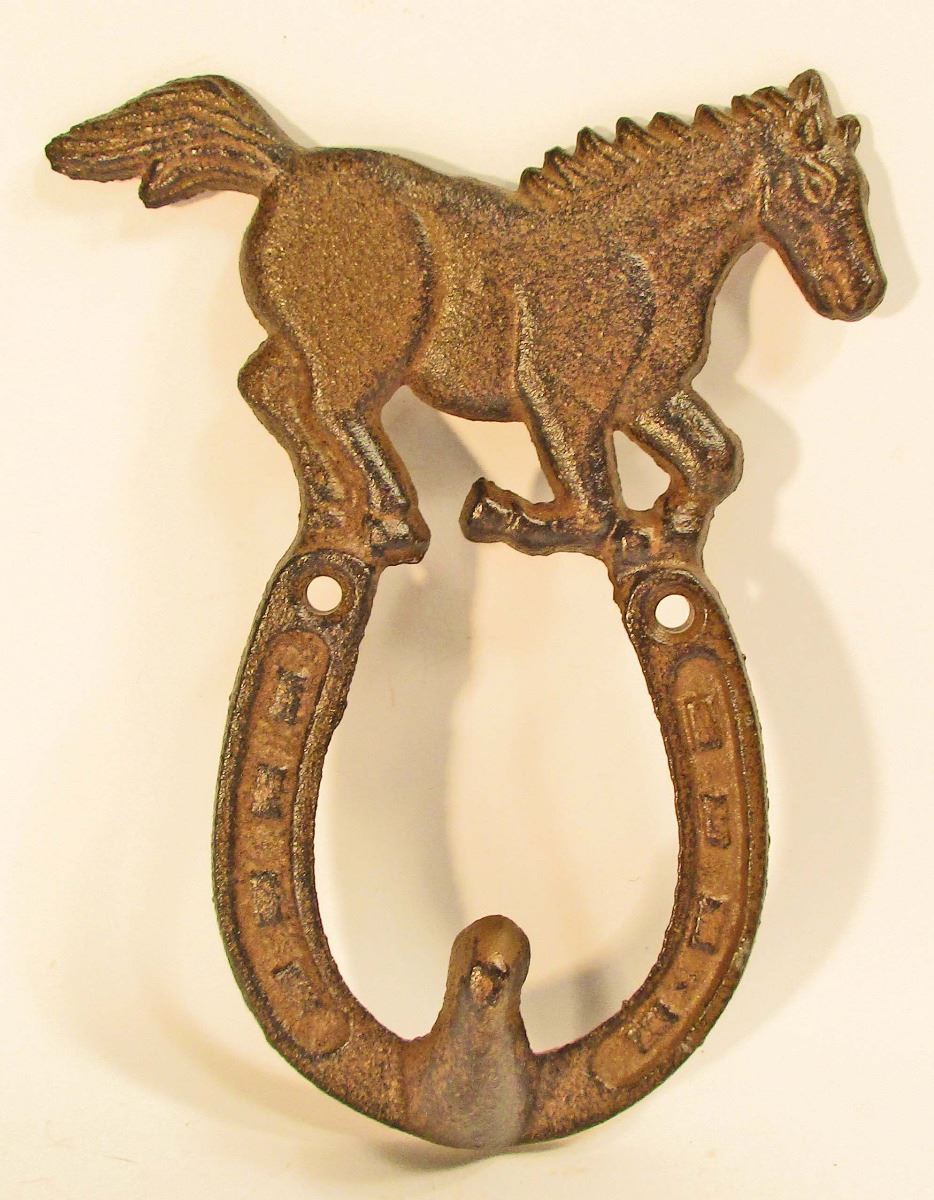CAST IRON WESTERN HORSE AND HORSESHOE WALL HOOK - 5.5" TALL