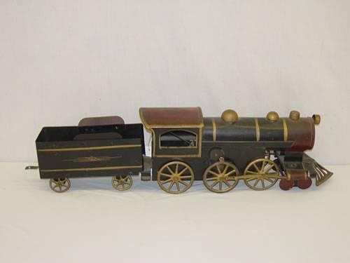 CAST IRON and PAINTED TIN LOCOMOTIVE and TENDER FRICTION TOY BY CLARK and CO., OHIO - PAINT WEAR and LOSSES;