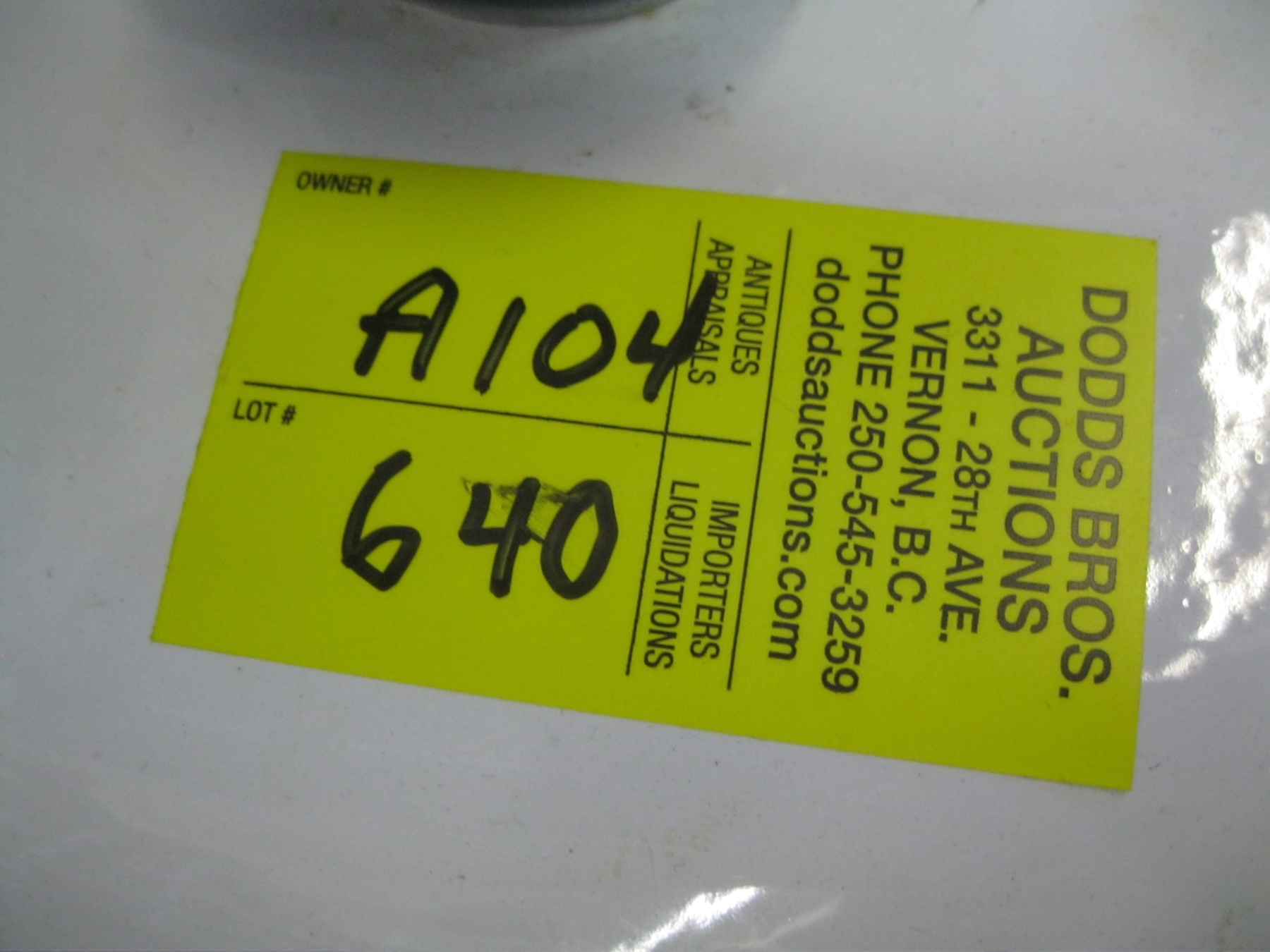 Attendance at the auction preview, or removal of purchased lots by purchaser/bidders and guests is done at their sole risk. Dodds Auction assumes no risk or liability, statutory, common law or otherwise whatsoever for the safety of those attending at the auction premises.