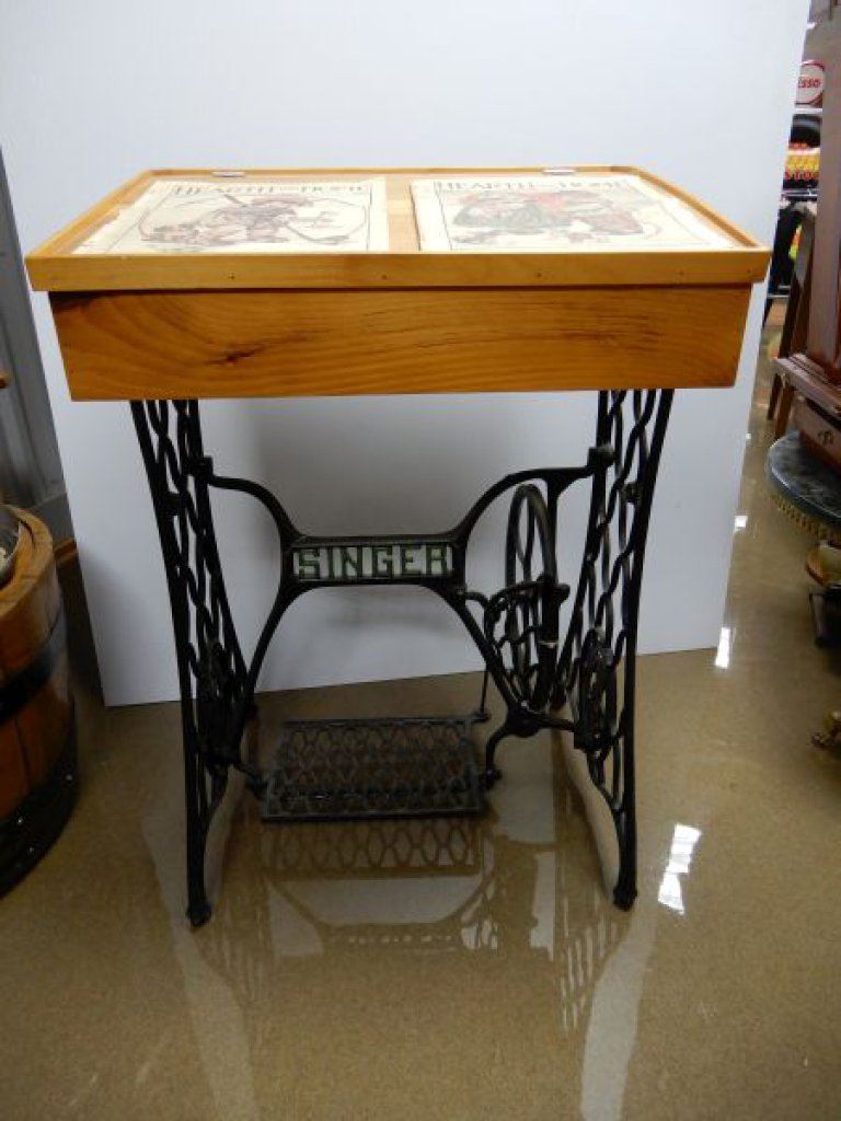 CAST SINGER SEWING MACHINE CONVERTED TO DESK 24 1/2" X 21" X 36" - 2 HEARTH & HOME MAGAZINES DATED 1925 LOCATION: LOWER LEFT