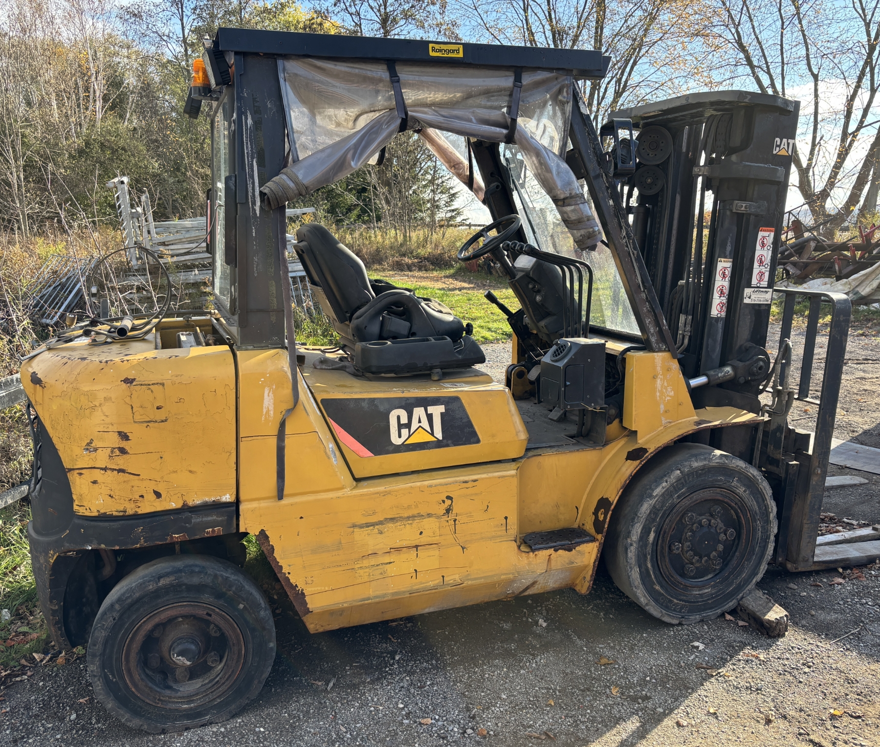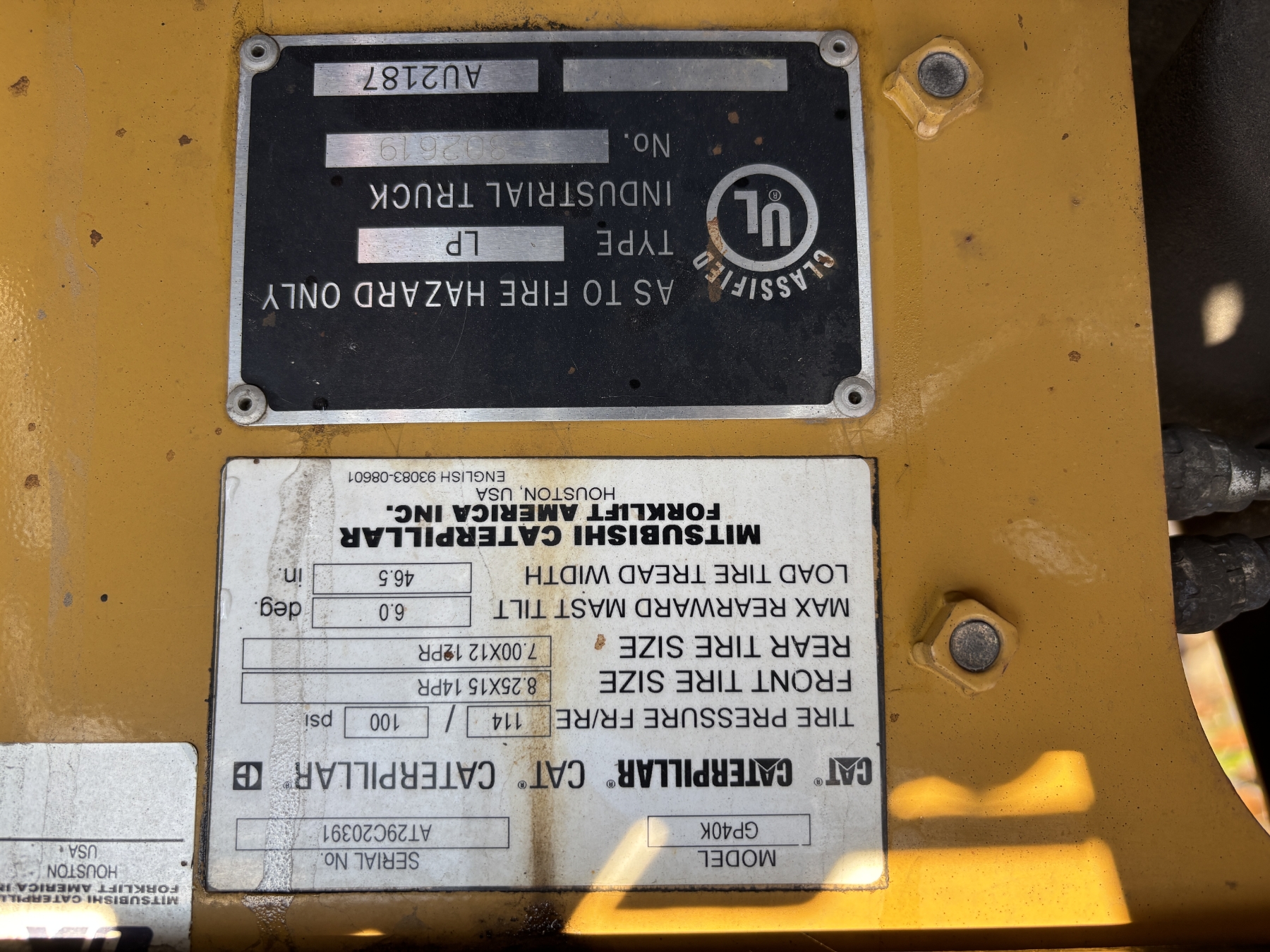 NOTE: 3 STAGE MAST. SIDE SHIFT FORKS. 6404 HRS SHOWING. NOT CURRENTLY RUNNING ? ELEC ISSUE.