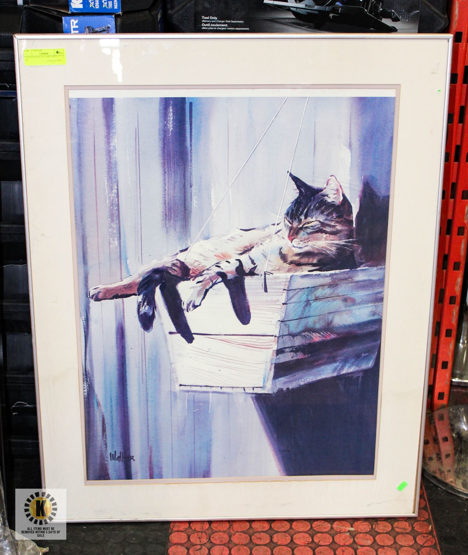 CAT PERCHED FRAMED ART PRINT 27" X 45"