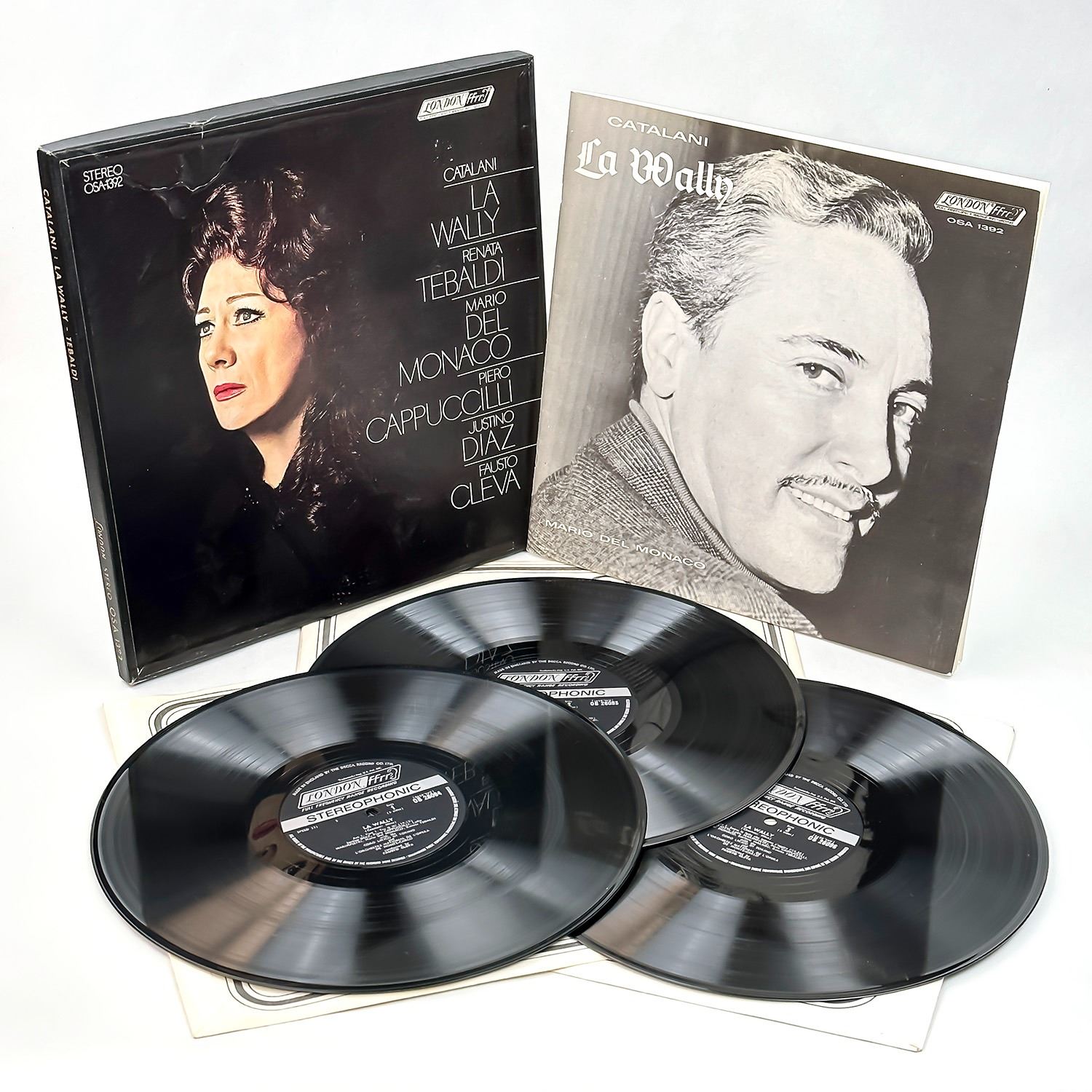 #9589 - 3X VINYL LP BOX SET & INFORMATIONAL INSERT. RECORD ALBUM FROM PRIVATE COLLECTION OF CLASSICAL/OPERA RECORDS. CLASSICAL, OPERA. CATALANI - LA WALLY - RENATA TEBALDI, MARIO DEL MONACO, PIERO CAPPUCCILLI, JUSTINO DIAZ, FAUSTO CLEVA. LONDON RECORDS OSA-1392