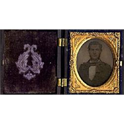 1/9 plate ambrotype of a man. Case is almost flawless—just one not-quite sharp corner.