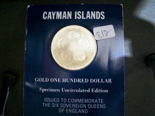 CAYMAN ISLANDS 1975 $100 "Gold" coin BU .3646 AGW