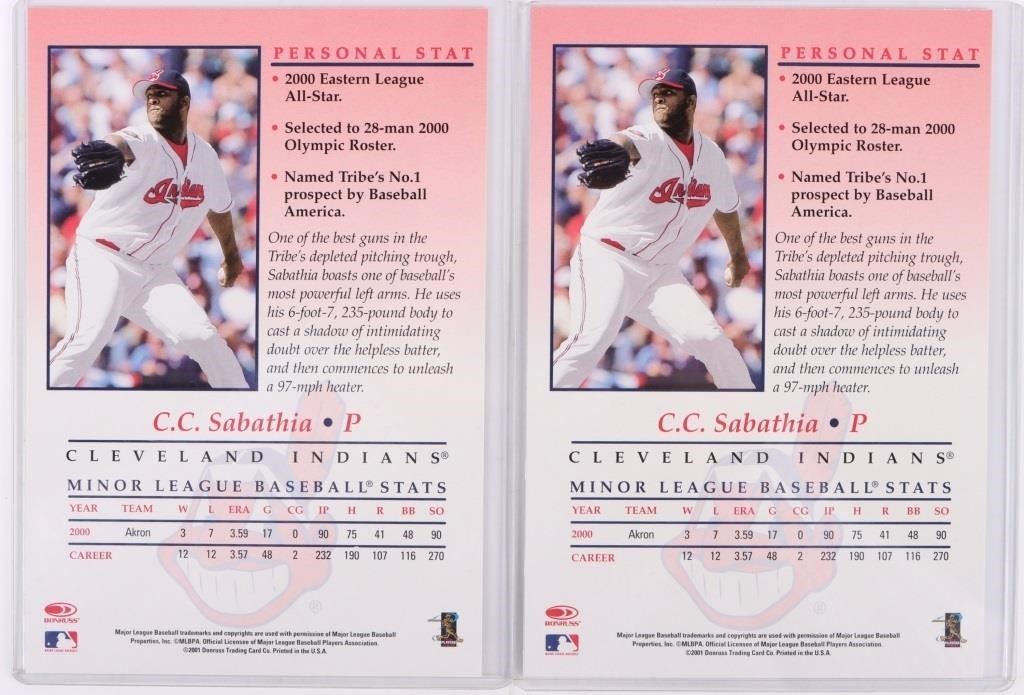 C.C. Sabathia and Edgar Martinez Donruss Studio Autographed private signing cards.