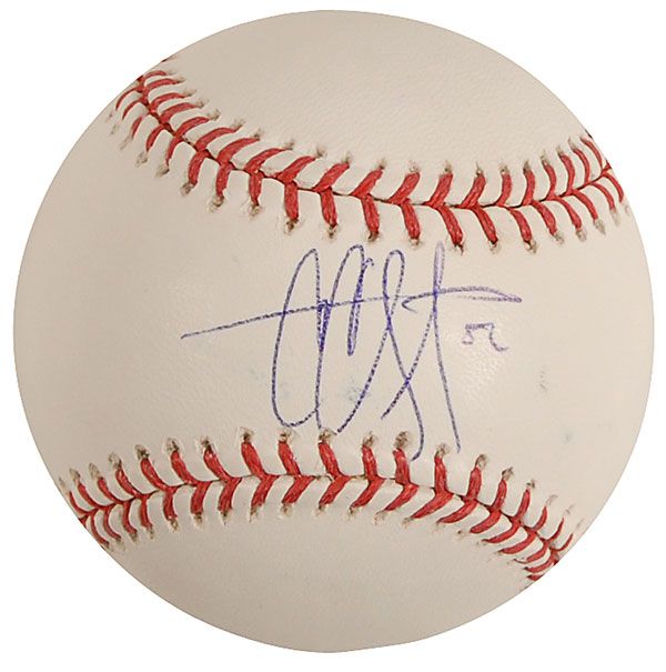 Official Rawlings Major League baseball signed in blue ballpoint on the sweet spot. In fine condition, with a trivial brush to the signature, a few light stray ink marks to side panels, and a PSA/DNA label affixed to a reverse side panel. Accompanied by a certificate of authenticity from PSA/DNA.