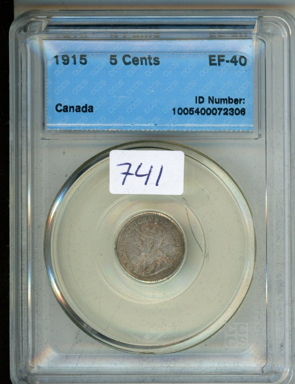 CCCS Graded 1915 Canada 5¢ Coin - EF-40