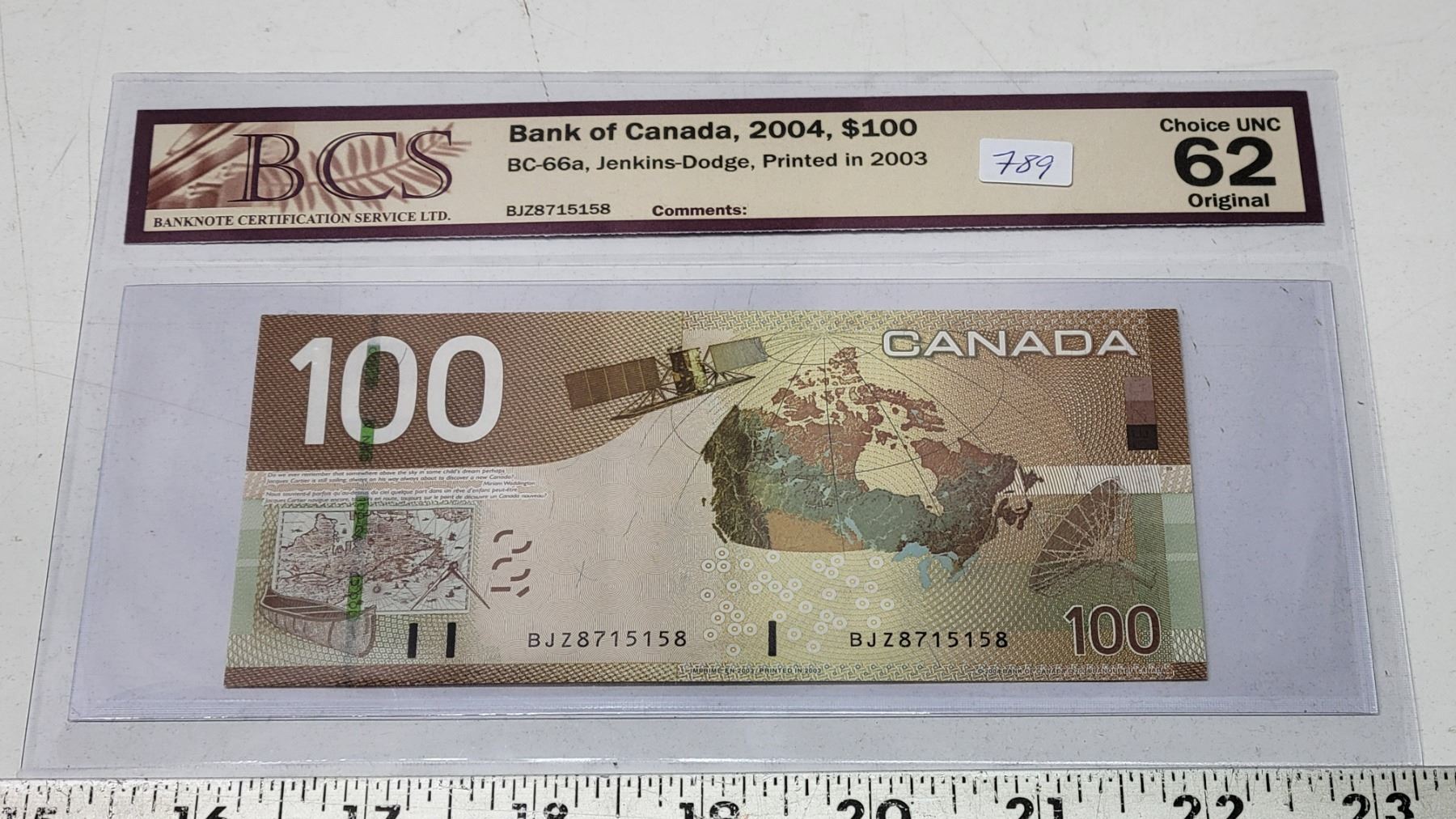 CCCS Graded Bank of Canada 2004 $100 Note - BJZ8715158 CUNC-62