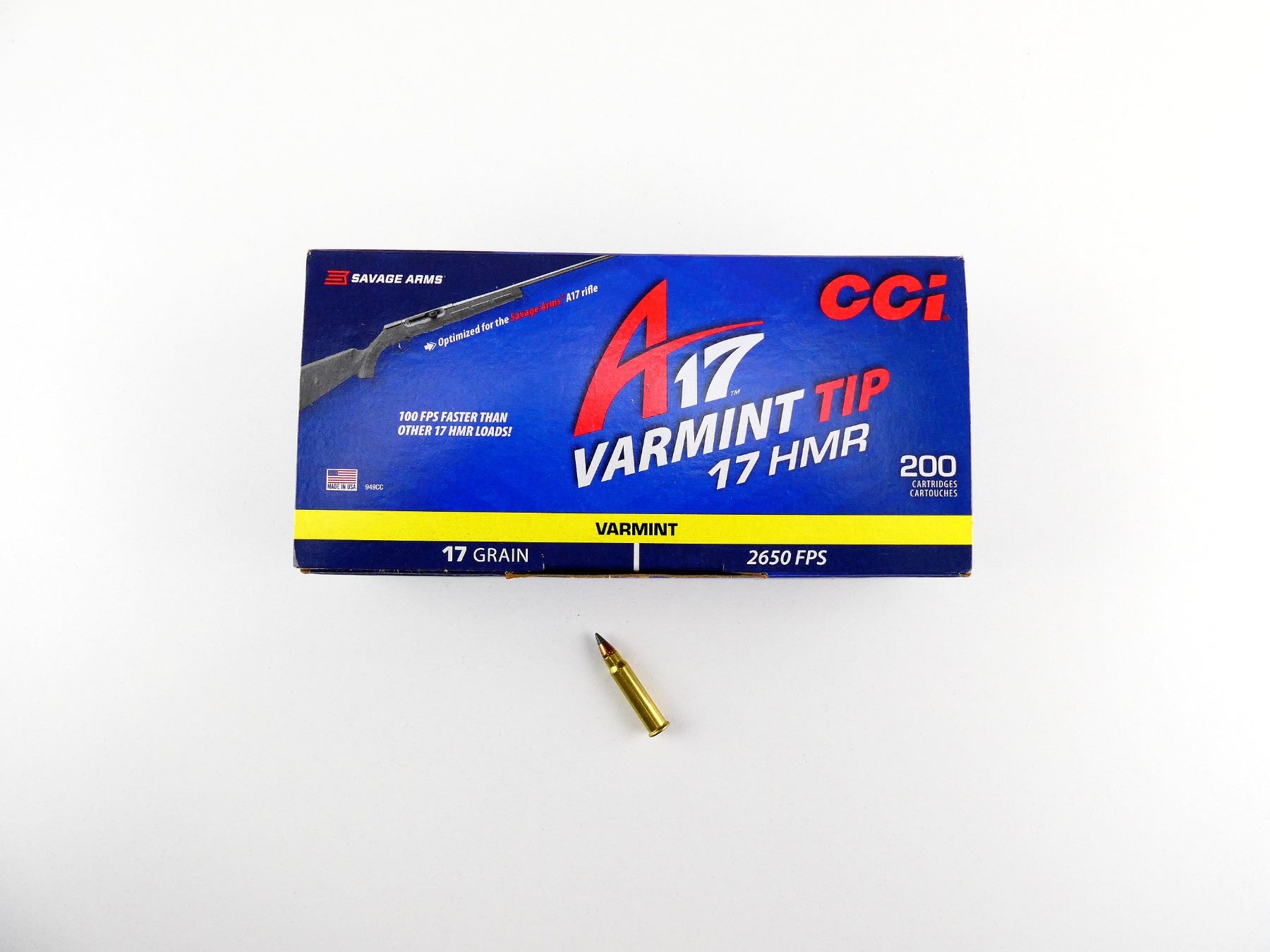 LOT INCLUDES; APPROX. (200) RNDS, 17 GRNS (STATED ON BOX NOT CONFIRMED), VARMINT TIP.