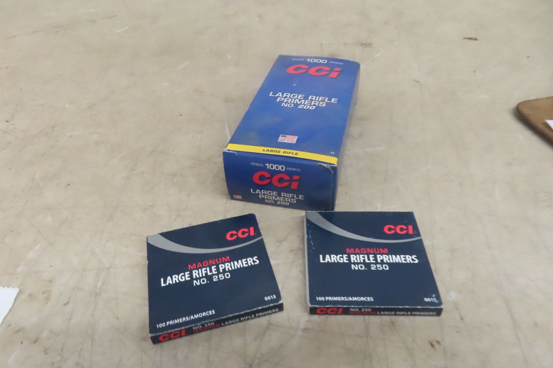 CCI Large Rifle Primers — 1,000 x No. 200; 200 x No. 250 (Total 1,200x). **** Must Have Pal, MUST PRESENT PAL WHEN PAYING INVOICE. WE DO NOT AND WILL NOT SHIP AMMO. IF YOU WIN AMMO YOU WILL BE RESPONSIBLE TO PAY FOR IT AND RESELL IT UNDER YOUR OWN CONSIGNMENT ****