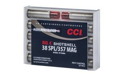 CCI/Speer Manufacturer Part #: 3714CC Model: Shotshell Caliber: 357 Mag Caliber: 38 Special Type: Shotshell Description: #4 Shot Size Units per Box: 10