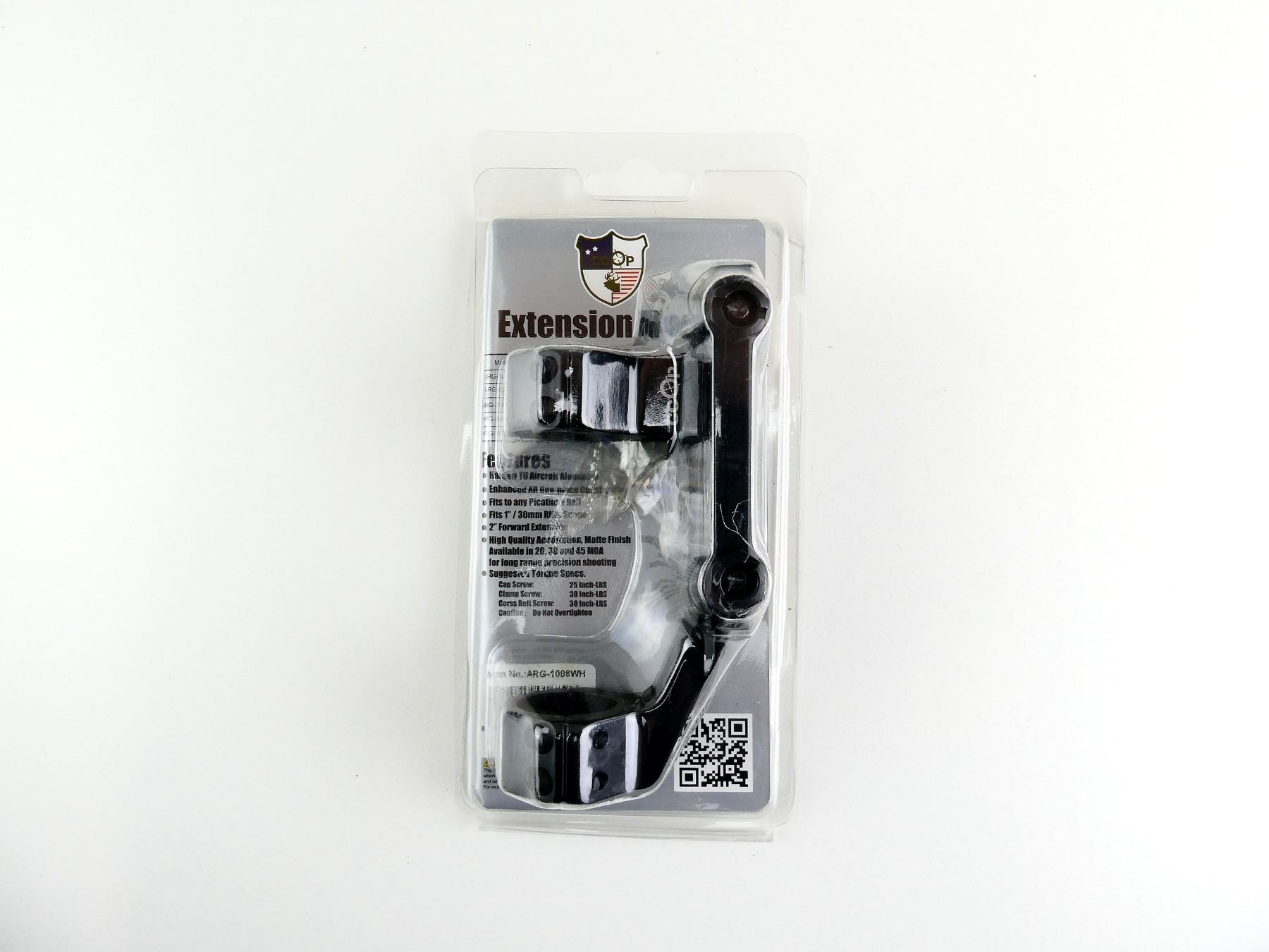 LOT INCLUDES; (1) EXTENSION MOUNT, FITS PICATINNY RAIL, BLACK ALUMINIUM, PART #: ARG-1008WH, APPEARS NOS IN ORIGINAL PACKAGING. MAY REQUIRE FITTING. SEE PHOTOS.
