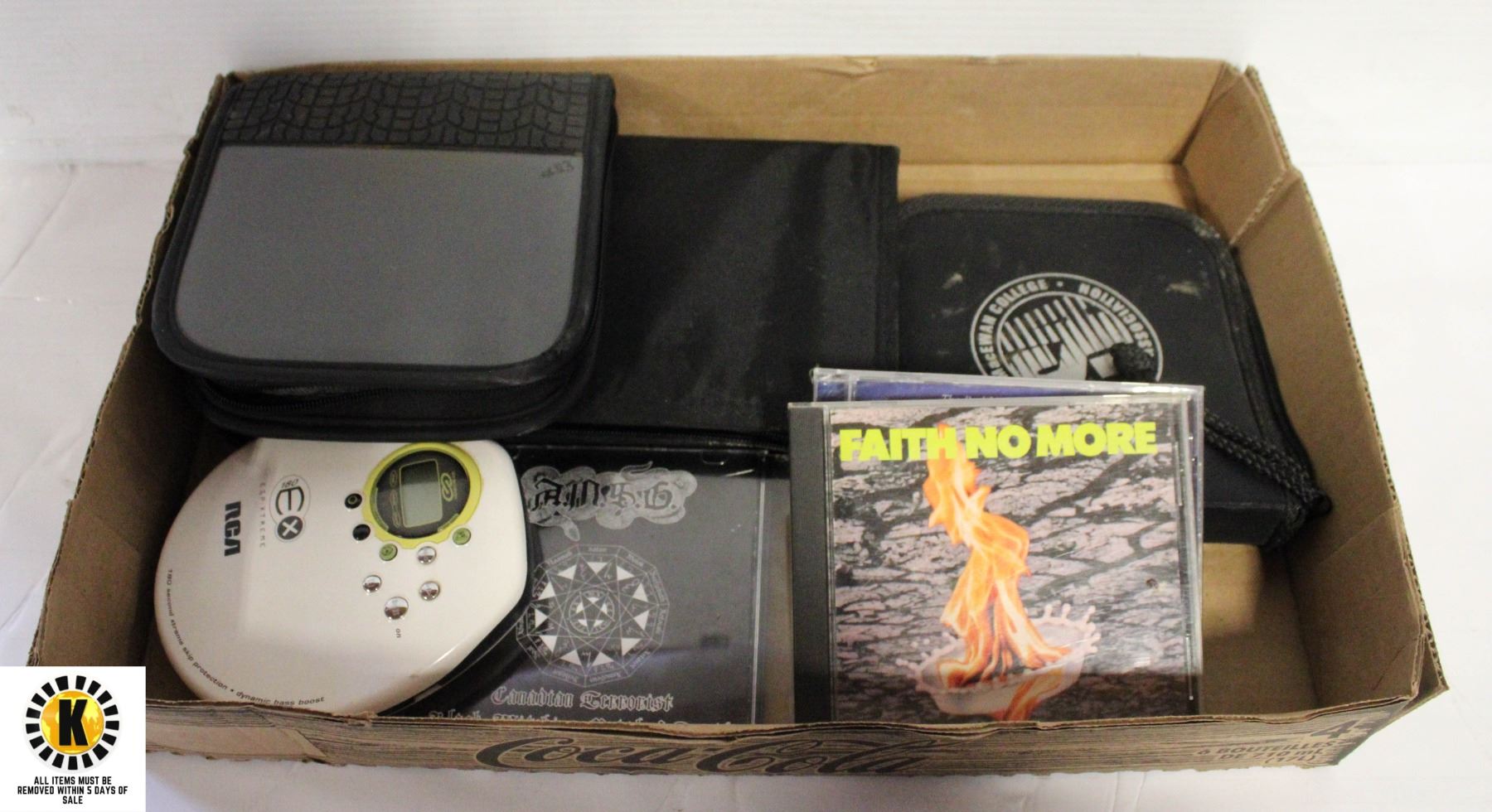 CD CASES, LOOSE CDS AND CD PLAYER, UNTESTED