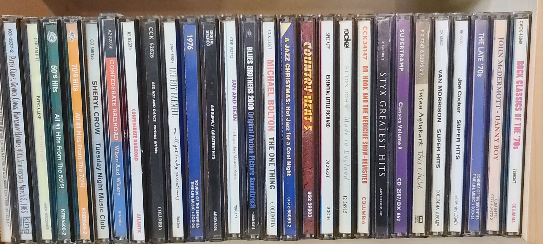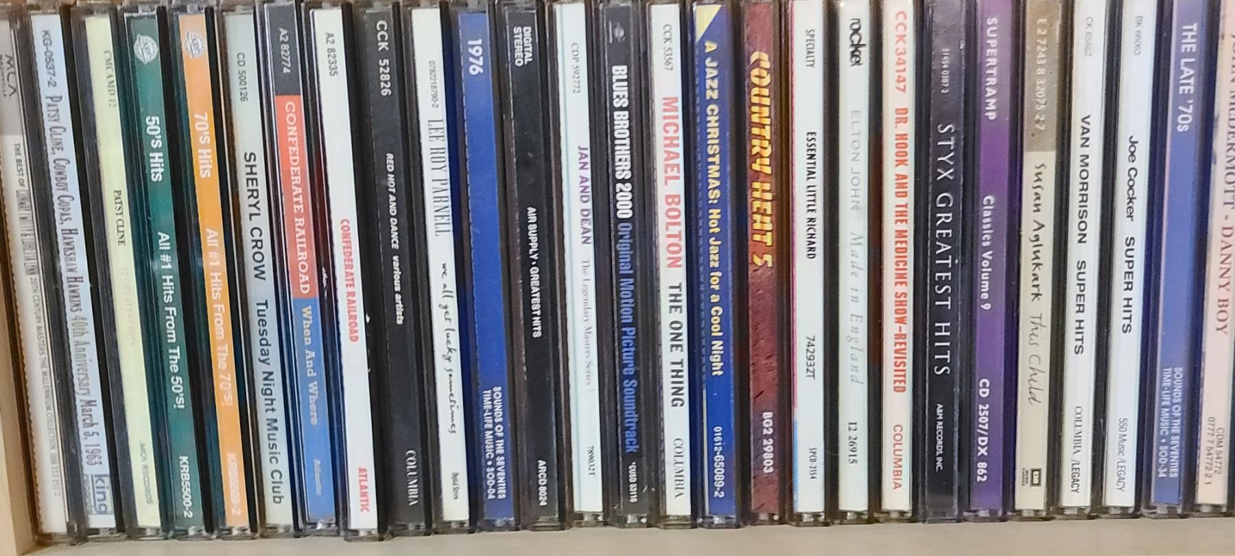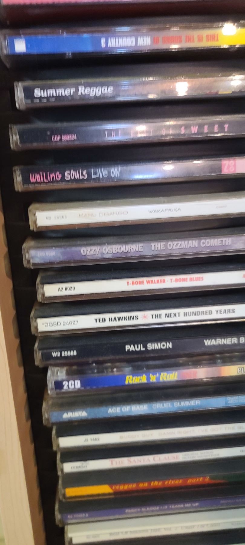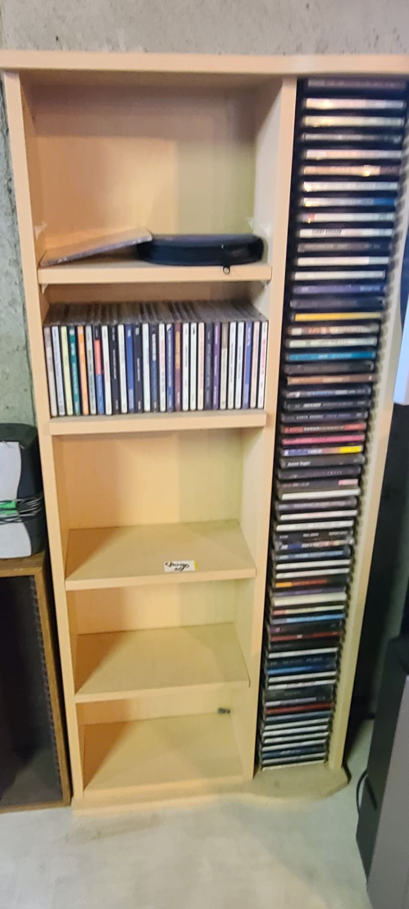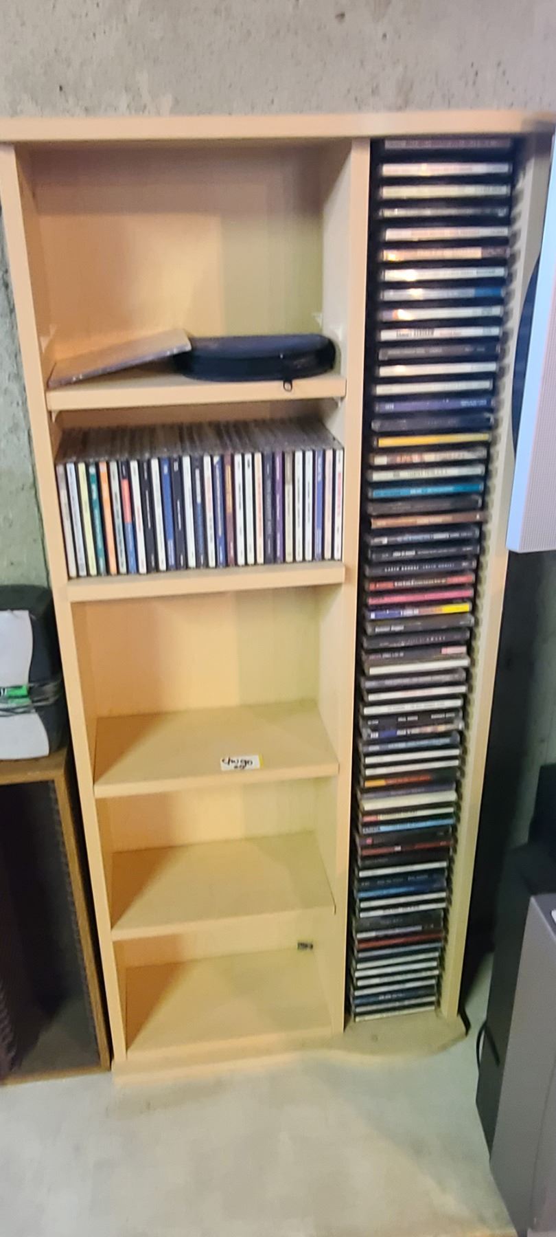 CD RACK/SHELVING UNIT WITH 60 +/- CD'S - ROCK AND COUNTRY