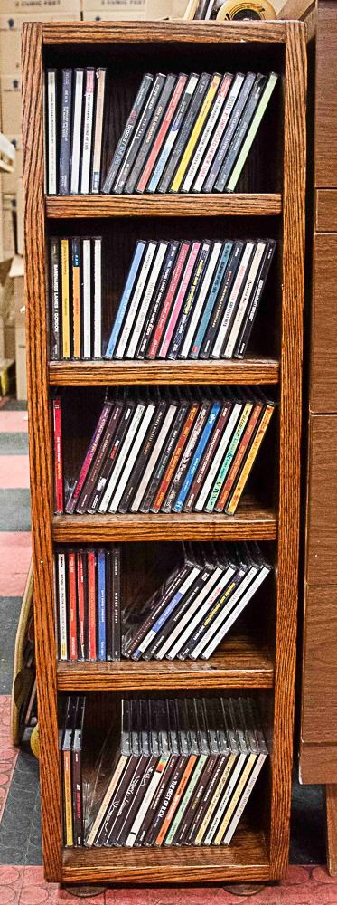 CD'S- ASSORTED IN LARGE WOOD FLOOR STAND RACK