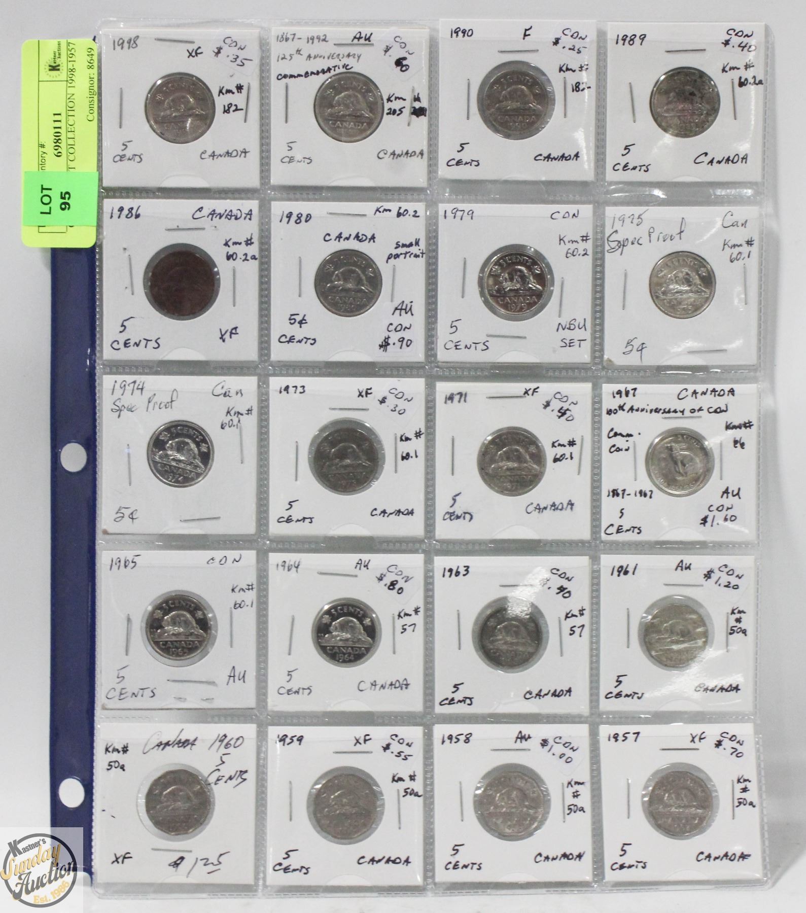 CDN 5 CENT COLLECTION 1998-1957 - 1 SHEET
