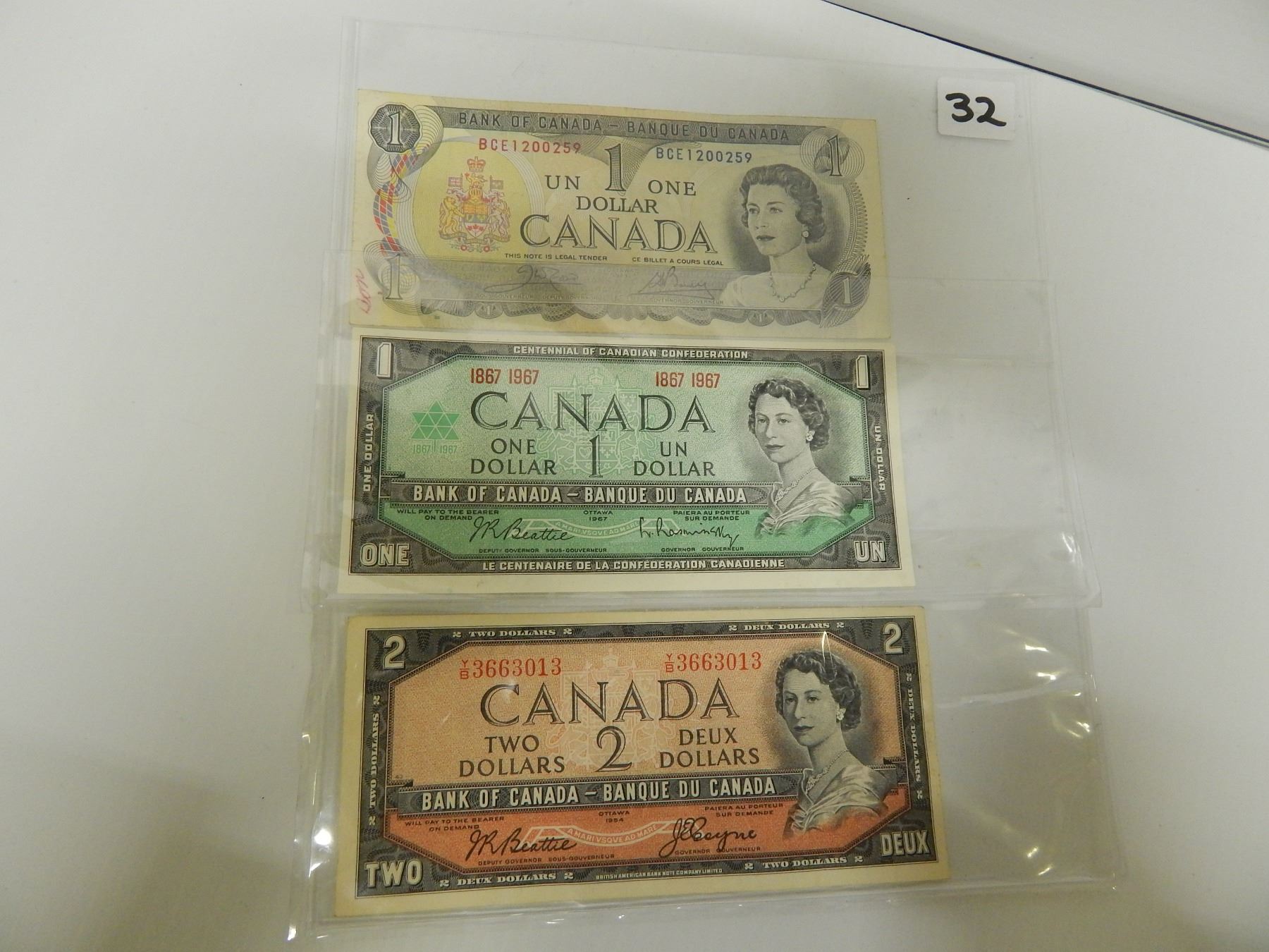 CDN 1973 ONE DOLLAR BILL/1954 TWO DOLLAR BILL UNCIRCULATED/1967 ONE DOLLAR UNCIRCULATED BILL