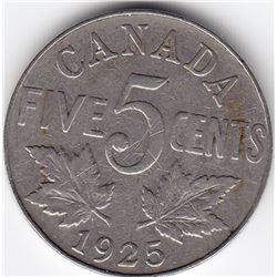 1925 Canadian 5-Cent Nickel Coin - VG/VG+ Condition with Scrathches