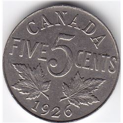 1926 Canada 5-Cent Nickel Coin - Near 6 - XF+