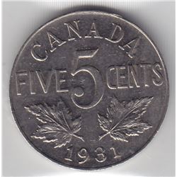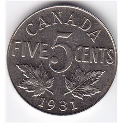 1931 Canadian 5-Cent Nickel Coin - AU-50