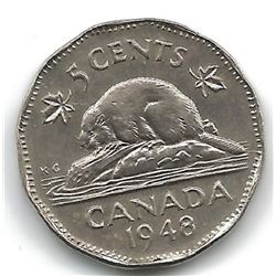 1948 Canadian 5-Cent Nickel Coin - UNC Condition