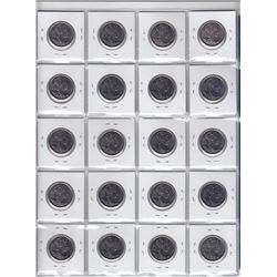 20 Canadian 1943 5-Cent Tombac Coins - All in 2x2's, Grades Range From EF40 - AU50