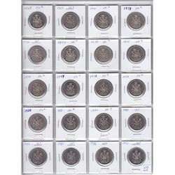 15 Canadian King George V 5-Cent Nickel Coins - 1922 - 1936 (Including 1925 VF20)
