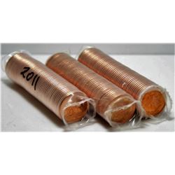 3 Canadian Small One Cent Penny RCM Rolls - All BU Reds - 2002, 2007 & 2011