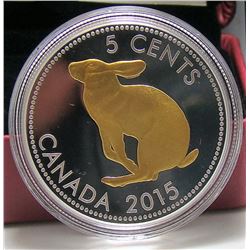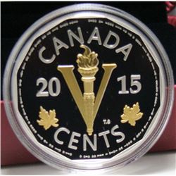 2015 Canadian Fine Silver 5-Cent Coin - Legacy of the Nickel - Centennial 5-Cent - Selectively Gold Plated, In Original Box From RCM With COA - NO TAX