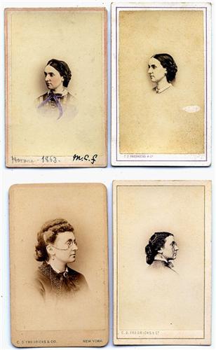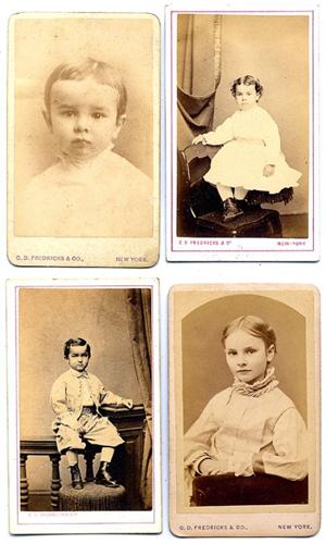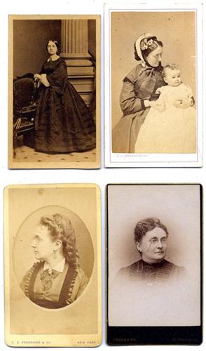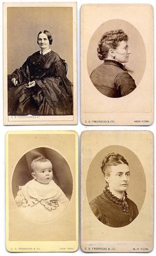 25 more from this family collection. 3 are vignette portraits of Fredricks. Others show his wife, children and other family members. Several are duplicates of images that appear in the preceding lot. Various mount styles and imprints. [2]to [3+]