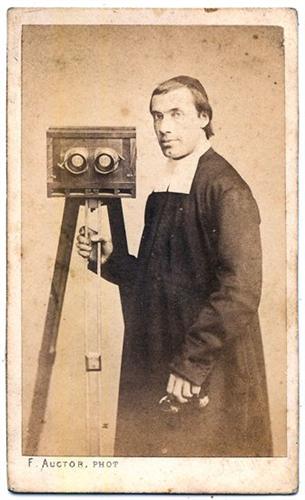 CDV by F. Auctor probably shows him. He holds his spectacles and what seems to be an adjustable front leg of the tripod. Slight wear and soil. [2+]