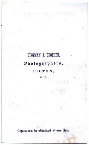 By Dingman & Brother, Picton, C.W., to round out this little run of CDV's from Canada. [3+]