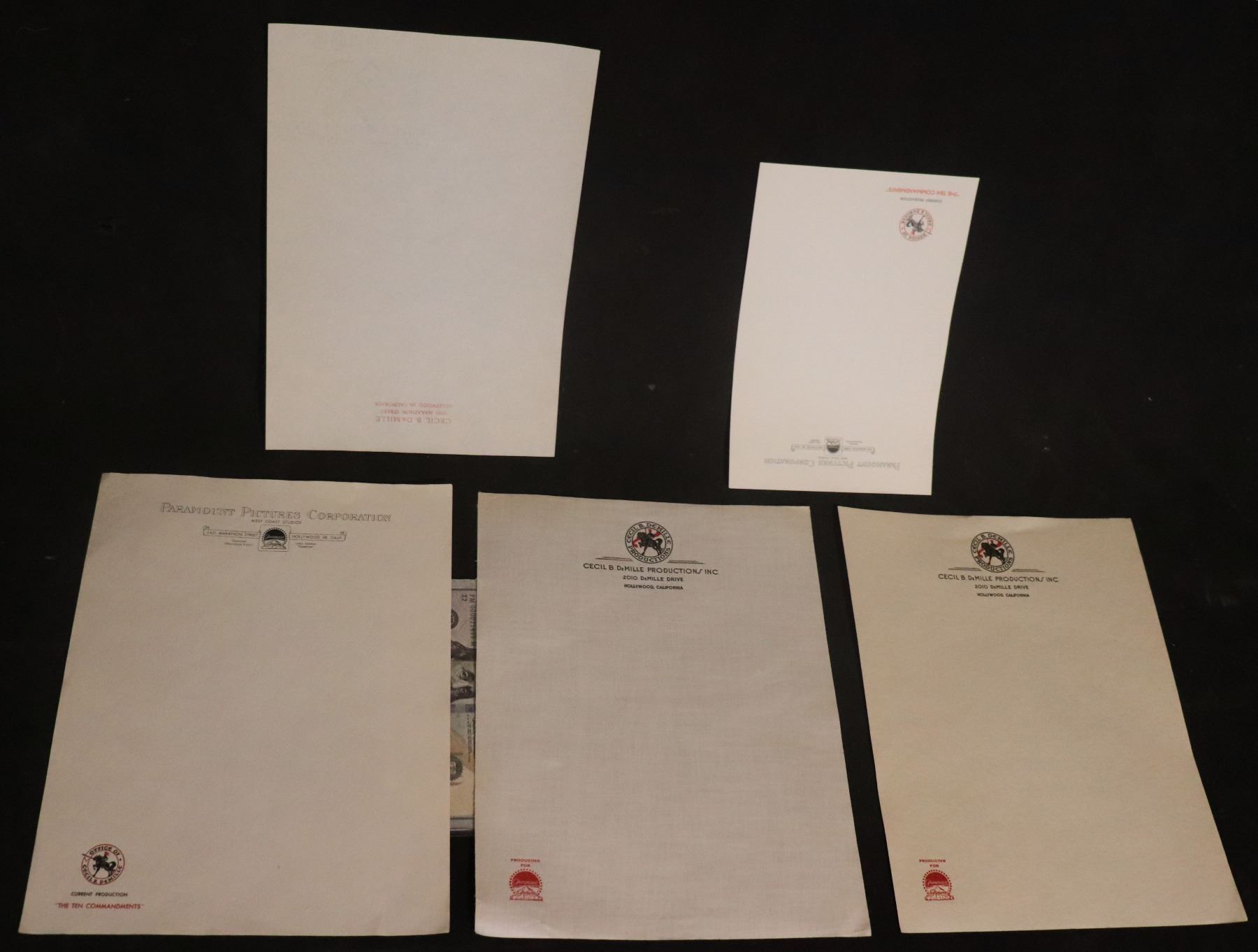 CECIL B DEMILLE SET OF OFFICE LETTERHEAD LOT OF 5!