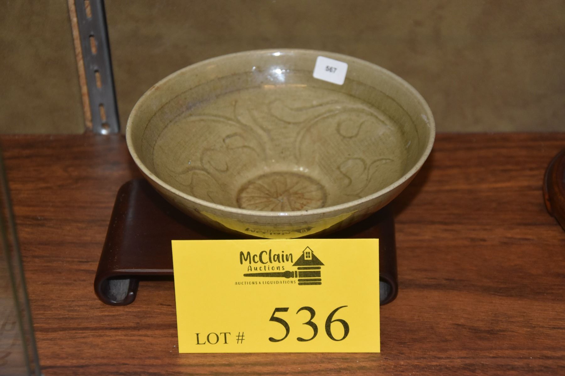 CELADON CHINESE INCISED BOWL W/STAND (6 1/2")