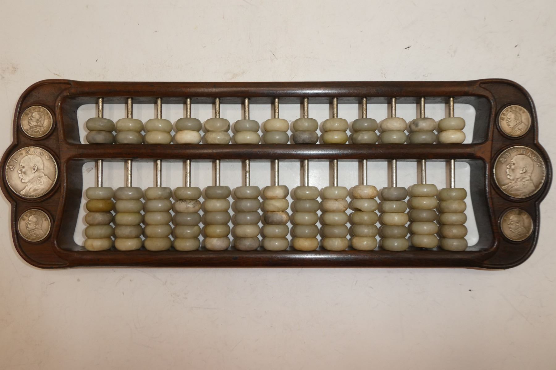 CELADON WHITE JADE BEADS WARLORDS ABACUS