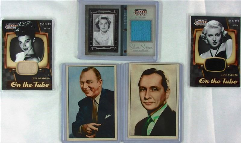 1952 BOWMAN #33 SWAYZE & #34 TRACY; 3- CELEBRITY WORN PATCH CARDS--AVA GARDNER, LANA TURNER, INGRID BERGMAN ESTIMATE $50 - $80.