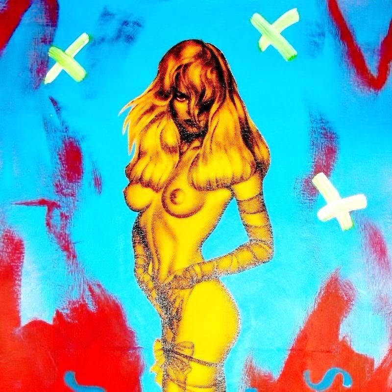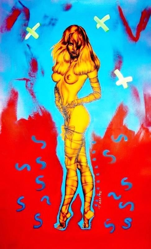 Artist: TONY AZZITO | Title of Art: CELEBRITY NUDE | Medium: SIGNED ORIGINAL PAINTING ON CANVAS WITH SILKSCREEN | Edition Size: Original | Art Size: 41x22 | Offered Unframed. Framing Presentation are often shown for concept only. Read description: If framed, framed size will be given | Value: $ 1000