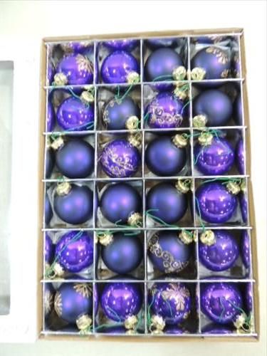 CELECBRATION PACK OF 24 CHRISTMAS TREE GLASS BULB ORNAMENTS.  AS SHOWN.  VIEW PICTURE FOR DETAIL.