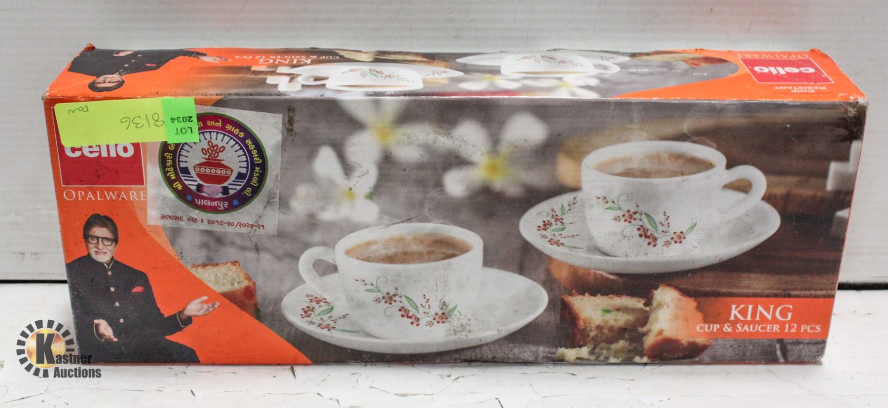 CELLO CHIP RESISTANT 12PC KING CUP AND SAUCERS