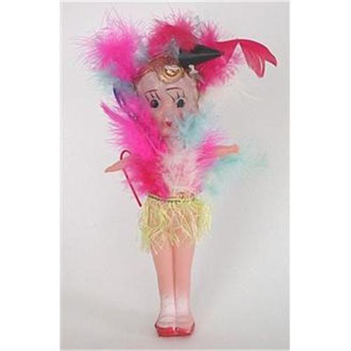 CELLULOID CARNIVAL FEATHER DOLL, moveable arms, Made in Japan, 7 inches tall.