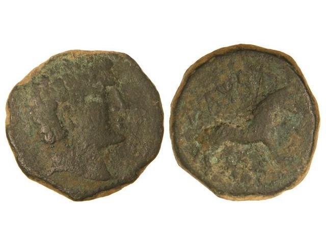CELTIBERIAN COINS - As. ILTIRTA. Anv.: Cabeza masculina a derecha. Rev.: Lobo a derecha, encima leyenda ibérica. 11,24 grs. Pátina verde. AB-1475. MBC-.