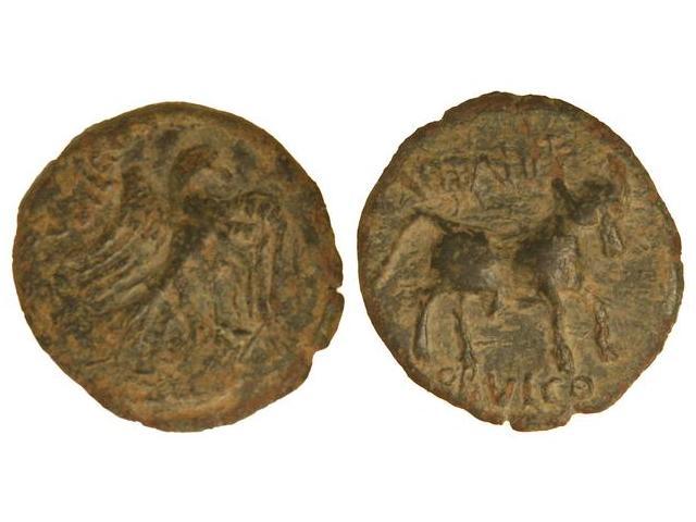 CELTIBERIAN COINS - Semis. OBULCO. Anv.: Águila a derecha, encima leyenda. Rev.: Toro a derecha, encima VII NII T, debajo OBVLCO. 6,50 grs. Pátina verde. AB-1846. MBC/MBC+.