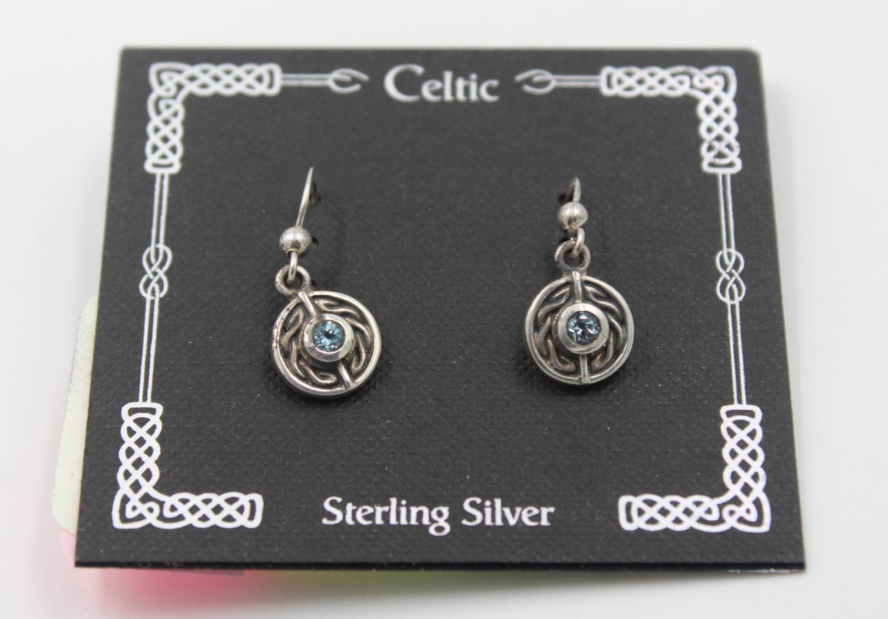 CELTIC AND TOPAZ STER SILVER EARINGS