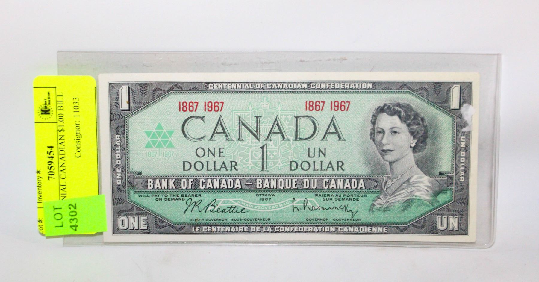 CENTENNIAL CANADIAN $1.00 BILL 1867-1967