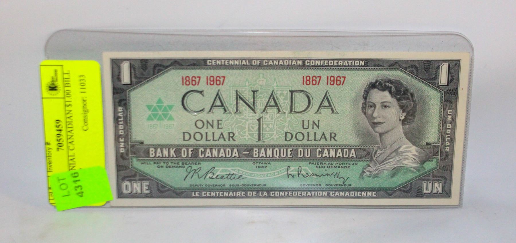 CENTENNIAL CANADIAN $1.00 BILL 1867-1967