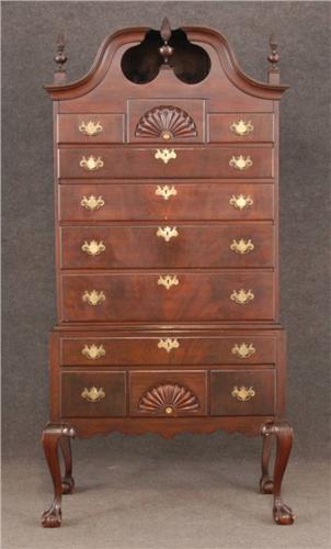CENTENNIAL CHIPPENDALE MAHOGANY HIGHBOY with shell carving, late 19th century <BR>condition: a few skillful veneer repairs on drawer fronts